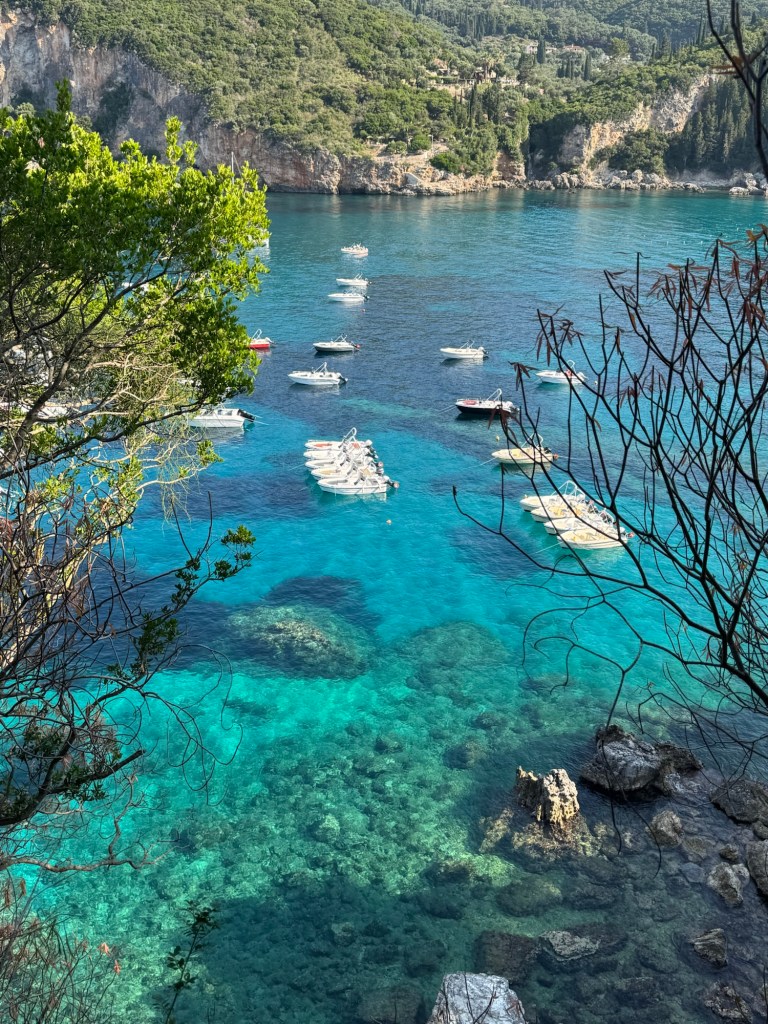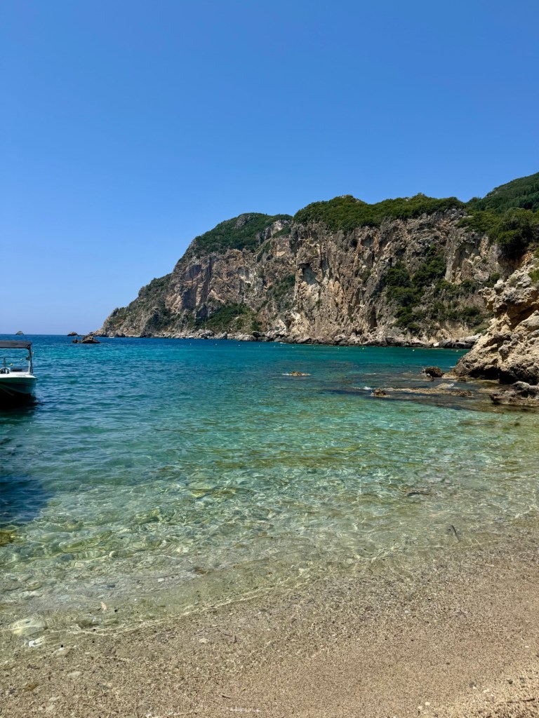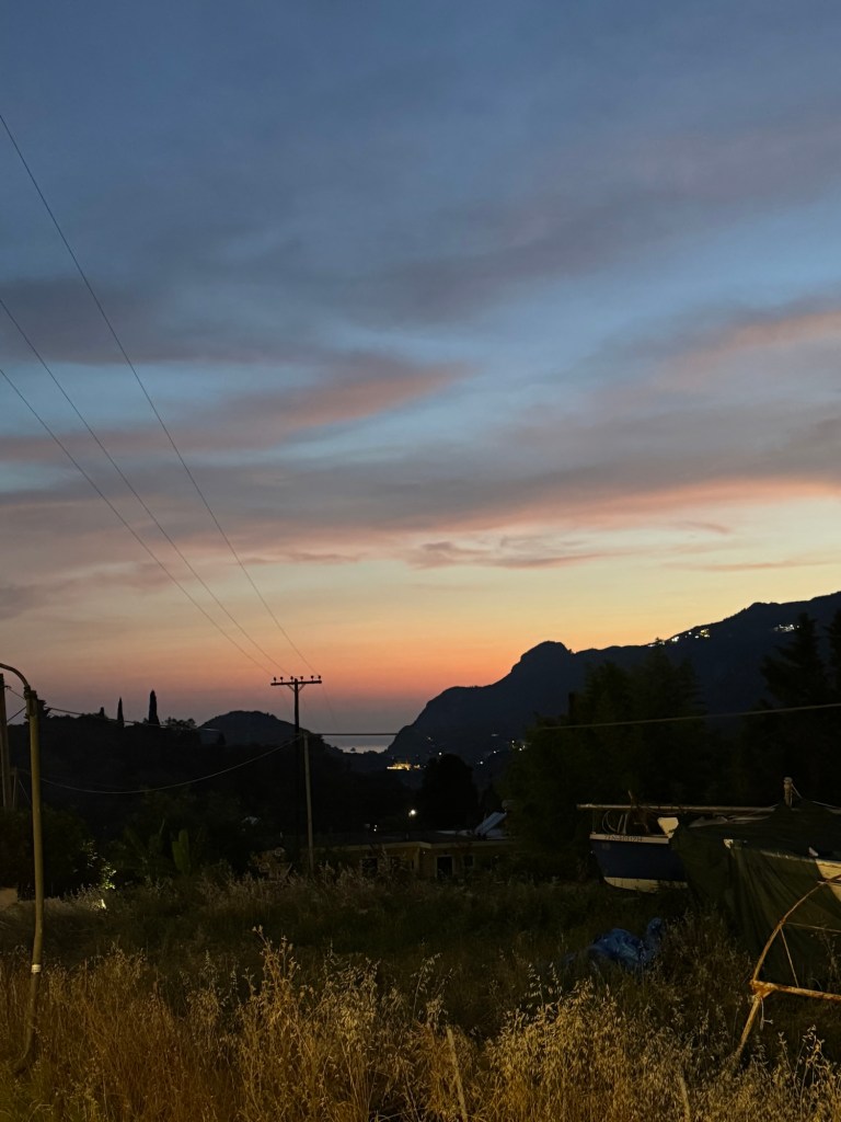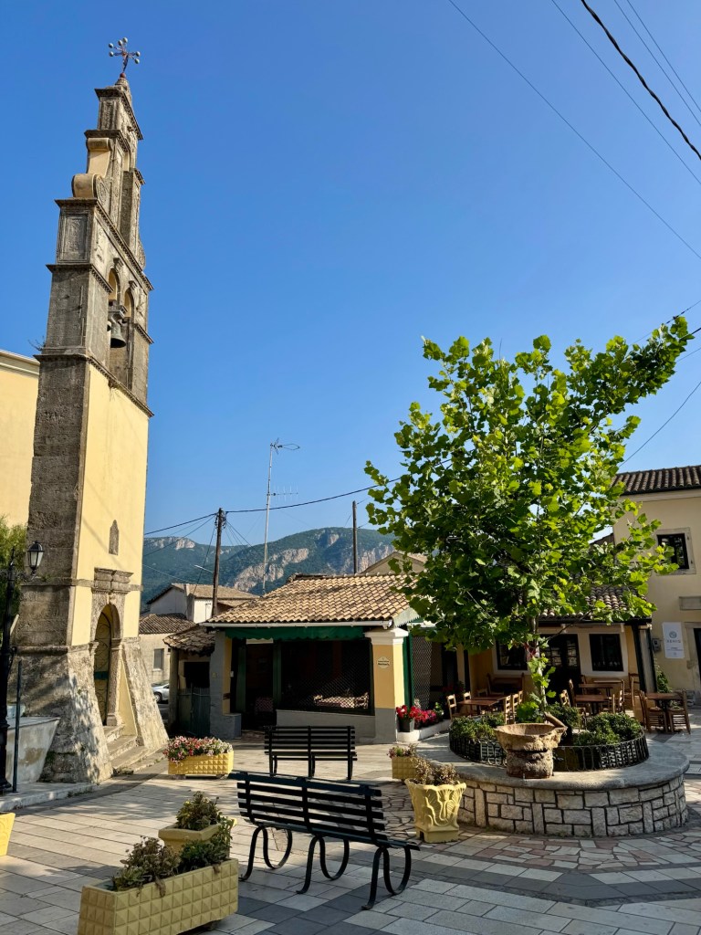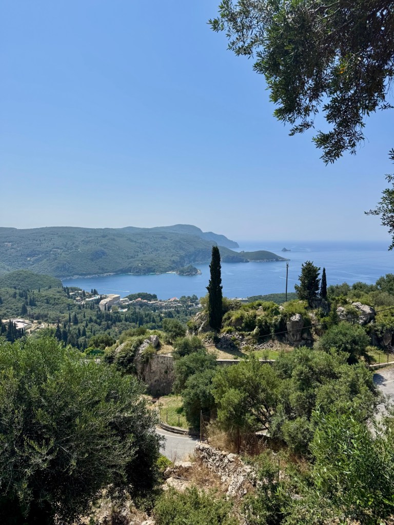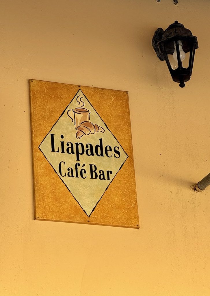 Last year, when talking about this trip, I would say to people: “Our ideal village to stay is one that has two cafes and a bike shop”. And here we are, on the western coast of the island of Corfu, staying in the village of Liapades (pop. 916), which has two cafes and a bike shop. Except that the bike shop rents motorbikes, not bicycles as we had envisaged!